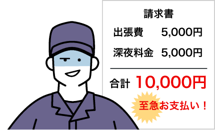 現場にお伺いし、トラブルの原因を正確に診断し、作業の準備を整えるための「基本対応費」です。
